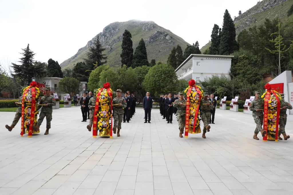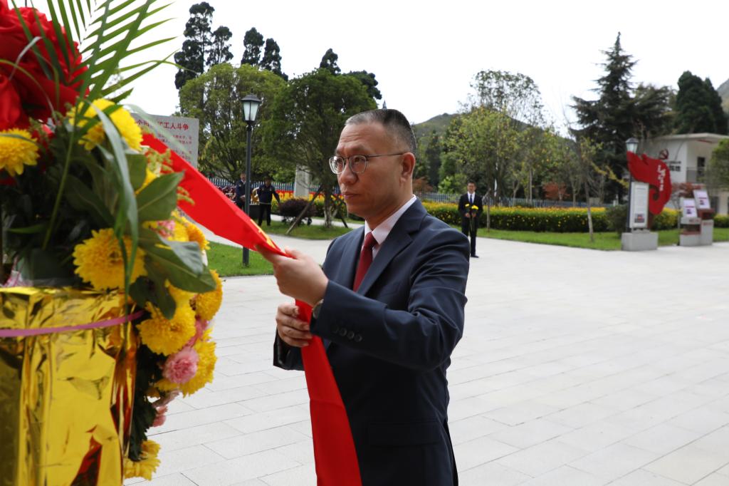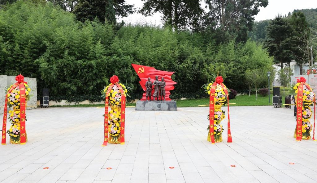 天地英雄氣,千秋尚凜然。青山翠柏環(huán)繞的“中共個(gè)舊錫礦特別支部”愛國(guó)主義教育基地莊嚴(yán)肅穆,李鑫、戴德明、楊逢春烈士群雕巍然屹立。以控股公司黨委、控股公司、控股公司工會(huì)、控股公司團(tuán)委名義敬獻(xiàn)的4個(gè)花籃一字排開,花籃紅色緞帶上“革命烈士永垂不朽”的金色大字熠熠生輝。
