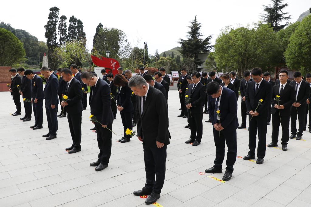 全體人員依次走到紀(jì)念碑前,獻(xiàn)上手中鮮花并瞻仰紀(jì)念碑。