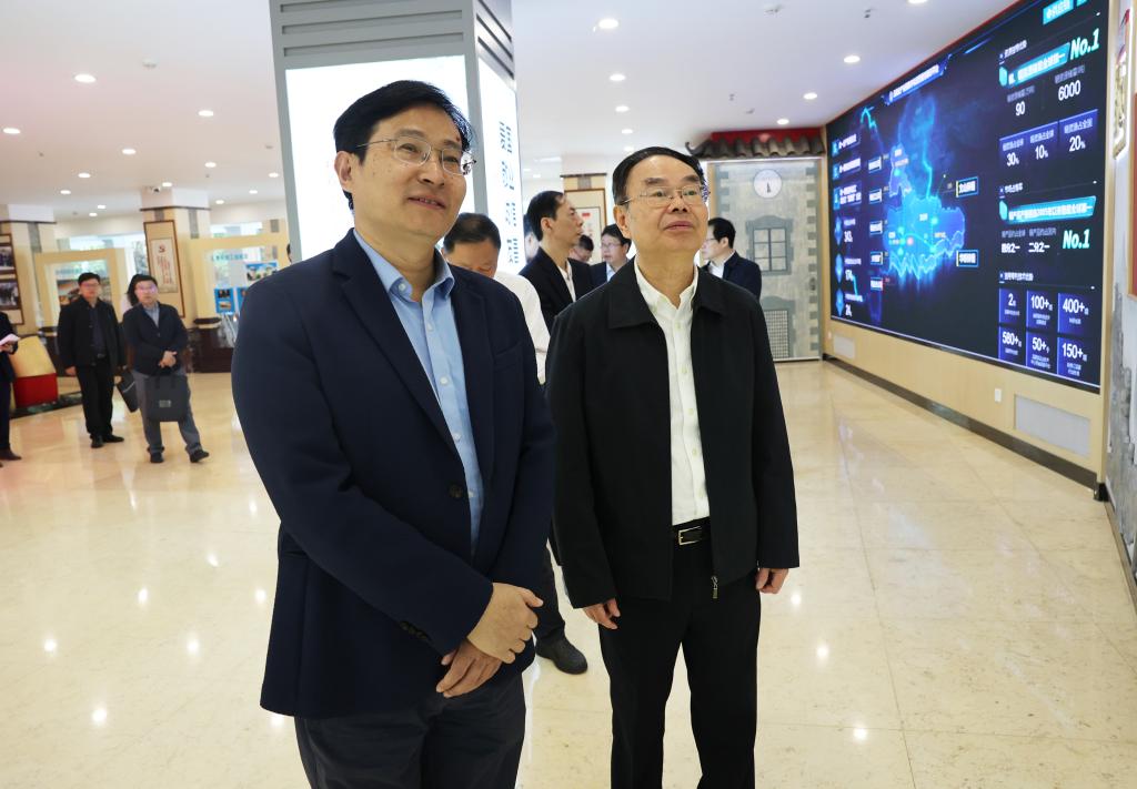 在一樓展廳,陳全訓(xùn)觀看云錫形象片,領(lǐng)略從一類到多類,以錫構(gòu)建多元應(yīng)用實踐的價值創(chuàng)造能力。通過全產(chǎn)業(yè)鏈數(shù)字化運營管控展示系統(tǒng),重點了解云錫精深加工產(chǎn)業(yè)發(fā)展情況,對錫產(chǎn)品從“以噸計價”到“以克計價”的深刻變革給予充分肯定。