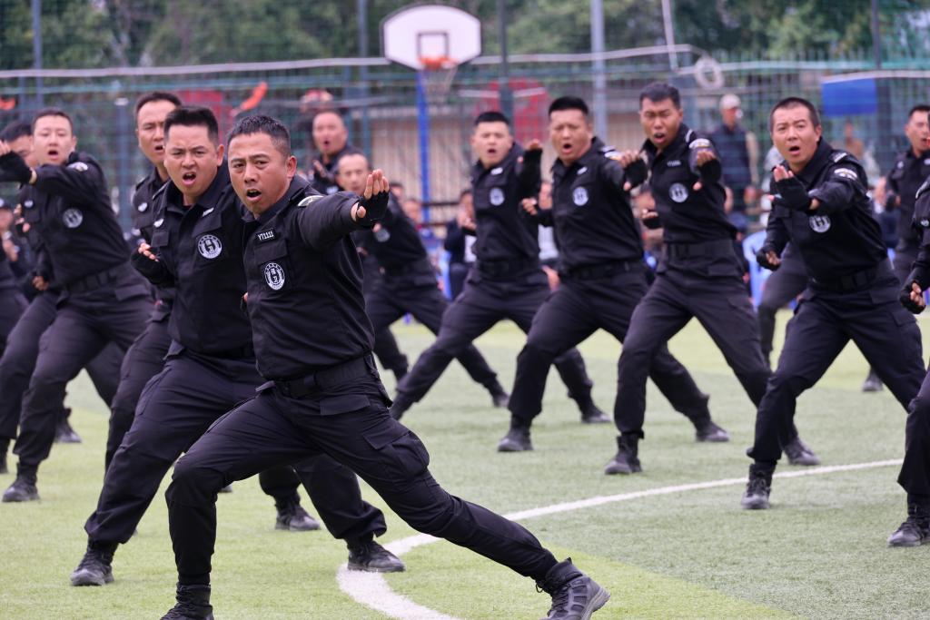 老廠分公司、大屯錫礦、卡房分公司、華聯(lián)鋅銦公司聯(lián)合方隊進行匯報表演,涵蓋隊列動作、應急棍術(shù)、擒敵拳、綜合格斗術(shù)、擒敵配套,全面檢驗綜治隊伍的綜合業(yè)務素質(zhì),展示良好的精神風貌和業(yè)務本領(lǐng)。整齊的隊列動作、嫻熟的應急棍術(shù)、靈活的擒敵拳術(shù)、多變的綜合格斗……一幕幕精彩的瞬間,迎得觀眾陣陣掌聲。匯演結(jié)束,主席臺就座領(lǐng)導與隊員們親切握手問候。