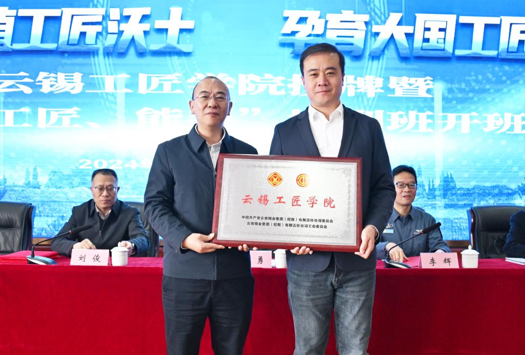 厚植工匠沃土,孕育大國工匠。12月12日上午,云錫工匠學院授牌暨首批“大師、工匠、能手”培訓班開班儀式在職業(yè)學院舉行,標志著云錫產(chǎn)業(yè)工人隊伍建設改革進入新階段、錫銦全產(chǎn)業(yè)鏈高素質技術技能人才培育平臺建設開啟新征程??毓晒军h委書記、董事長孫勇,省總工會兼職副主席、云南首位大國工匠李輝出席并致辭。