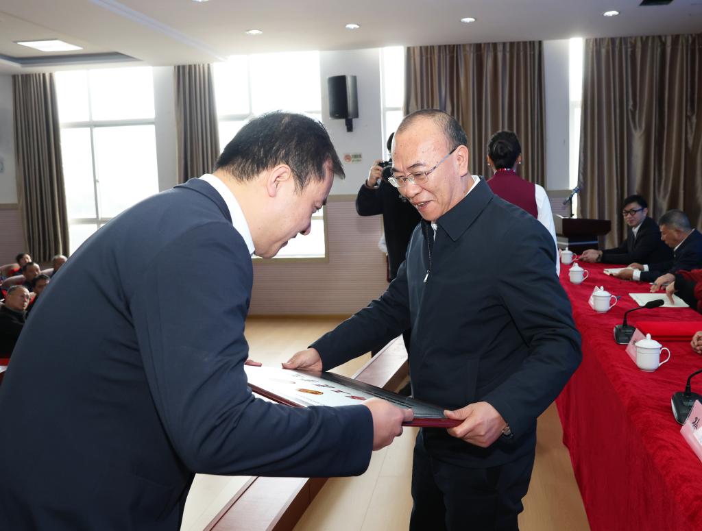 主席臺就坐領導為云錫工匠學院及實訓基地授牌,為李輝及首屆全國輕工大國工匠、昆明理工大學孫鴻雁教授頒發(fā)特聘工匠導師證書。