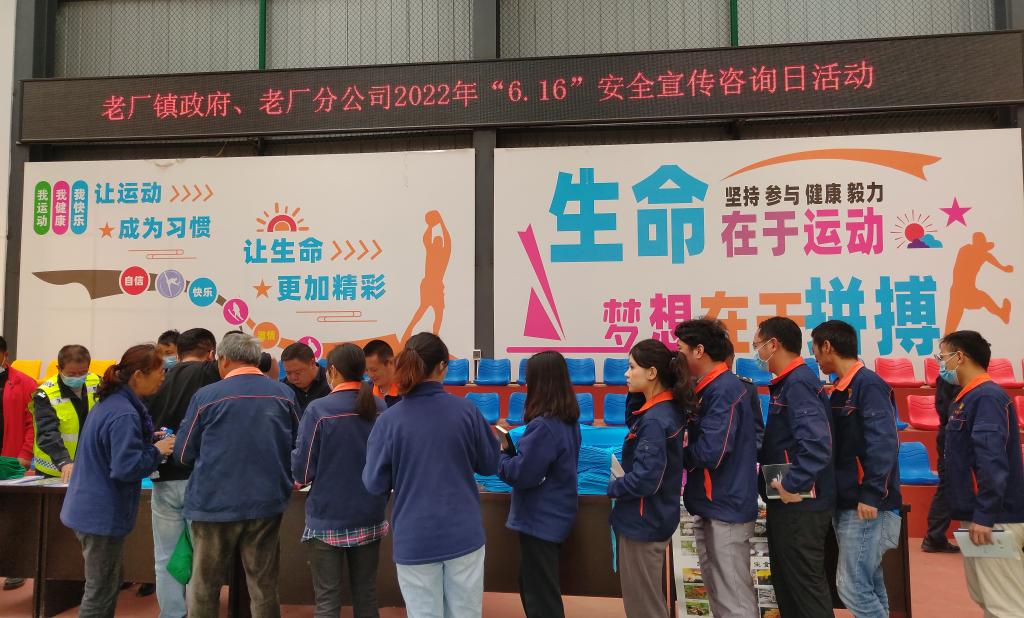 2022年6月是我國第21個全國安全生產(chǎn)月,6月16日為“安全宣傳咨詢?nèi)铡?,宣傳主題為“遵守安全生產(chǎn)法 當(dāng)好第一責(zé)任人”,云錫各單位結(jié)合實(shí)際,通過放置宣傳展板、發(fā)放宣傳資料、現(xiàn)場咨詢、有獎測試、手機(jī)APP“隱患排查闖關(guān)游戲”等方式開展職工喜聞樂見的系列活動,宣傳安全生產(chǎn)方針政策、法律法規(guī)和安全知識,一項(xiàng)項(xiàng)豐富多彩的活動,讓廣大干部職工安全理念入腦入心。累計(jì)接受職工群眾法律咨詢300余次,發(fā)放法治宣傳手提袋1000余個、宣傳資料5000余份,在全司營造“關(guān)愛生命、關(guān)注安全”的濃厚氛圍。
